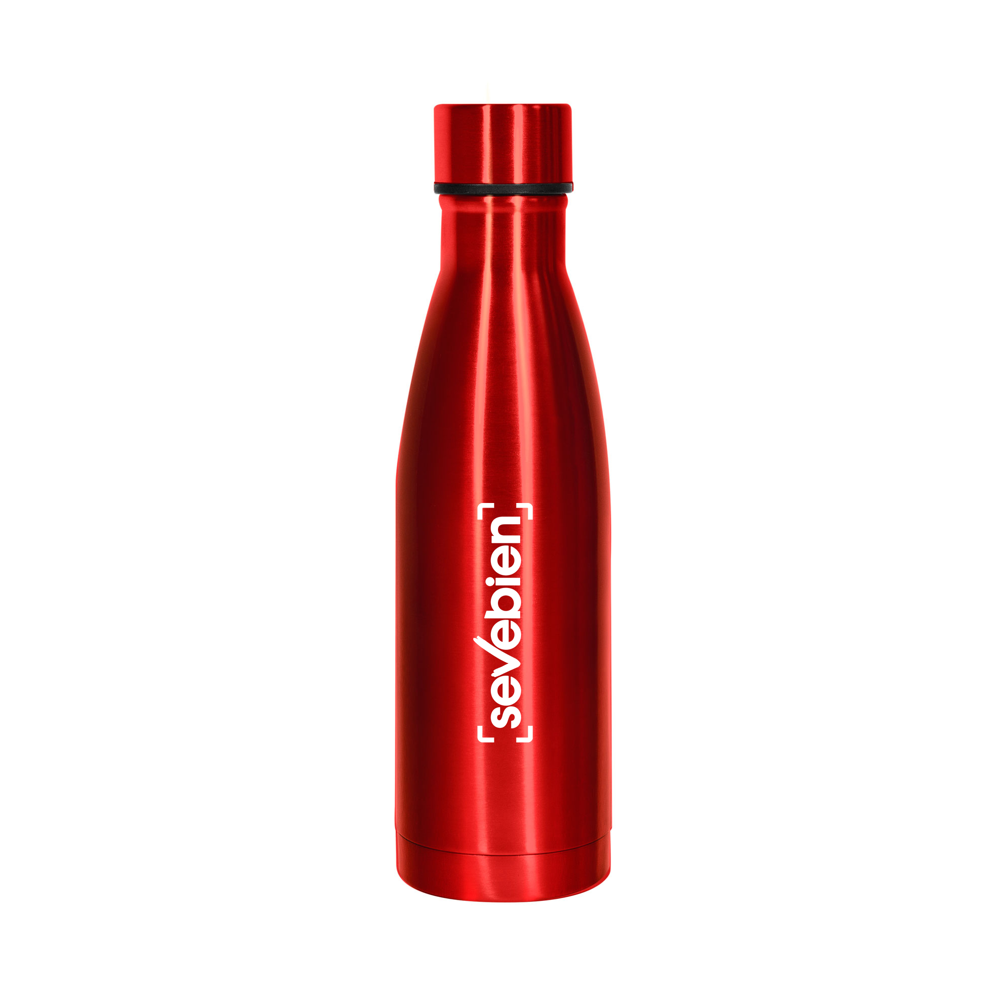 Botella doble pared, sellada al vacío. Interior en acero 304, exterior en acero 201. Tapa rosca de acero.