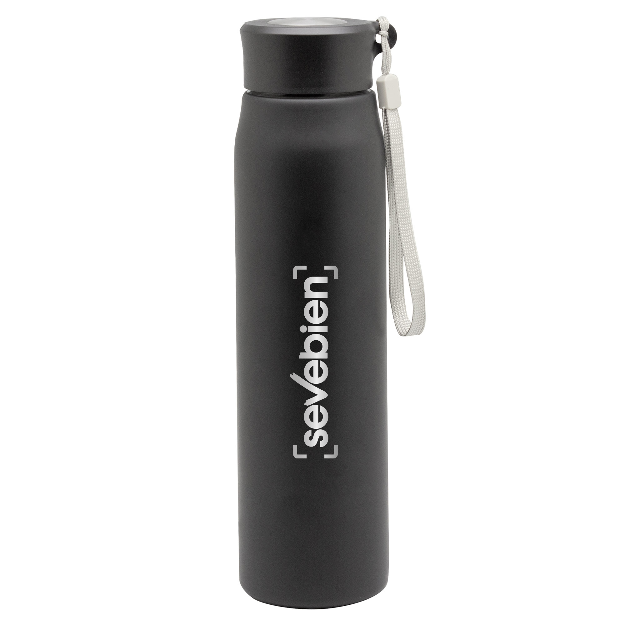 Botella doble pared, sellada al vacío. Interior en acero 304, exterior en acero 201. Tapa rosca de acero.