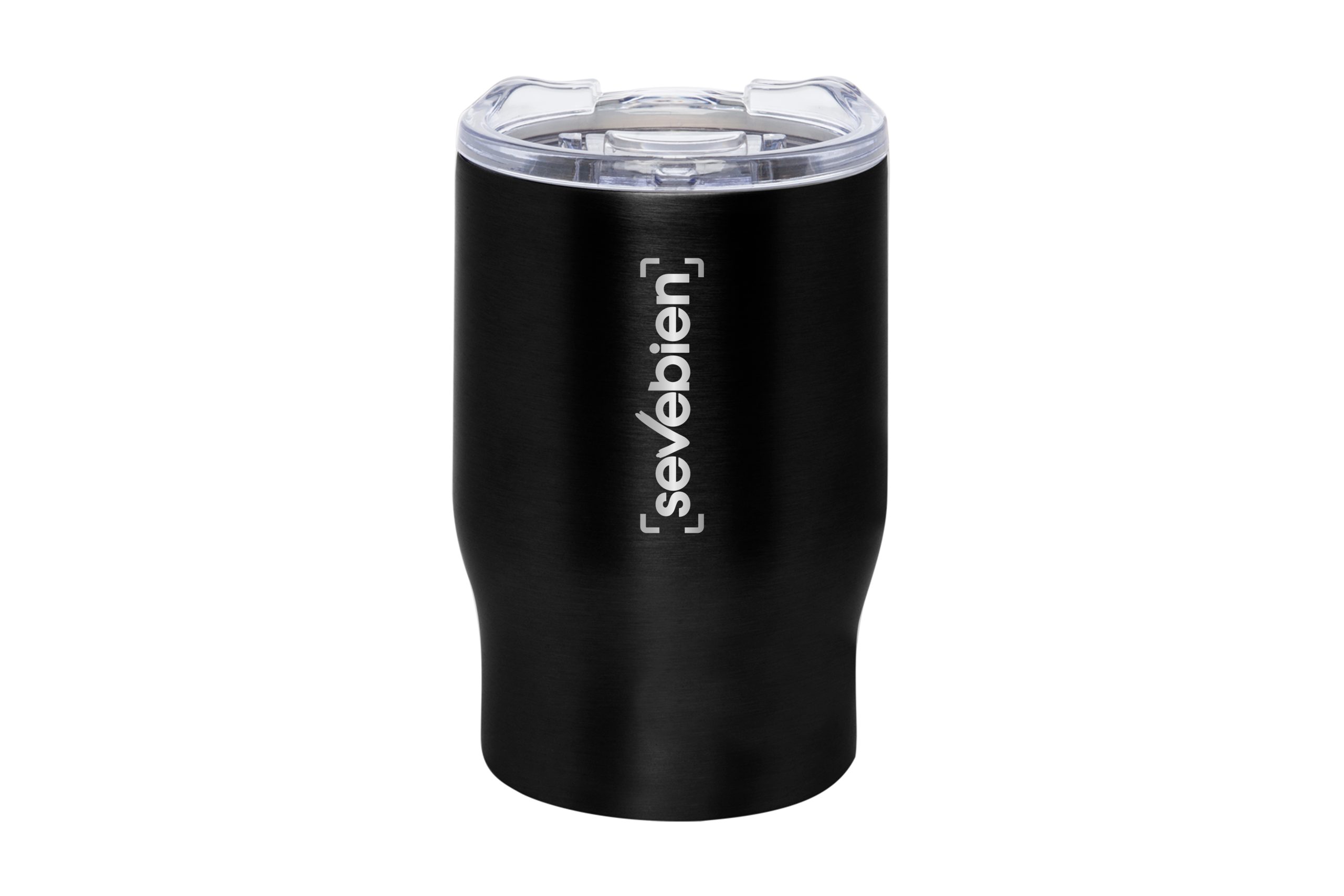 Elegantes Mug doble pared. Interior de acero 304 y exterior de acero 201. Tapa plástica.