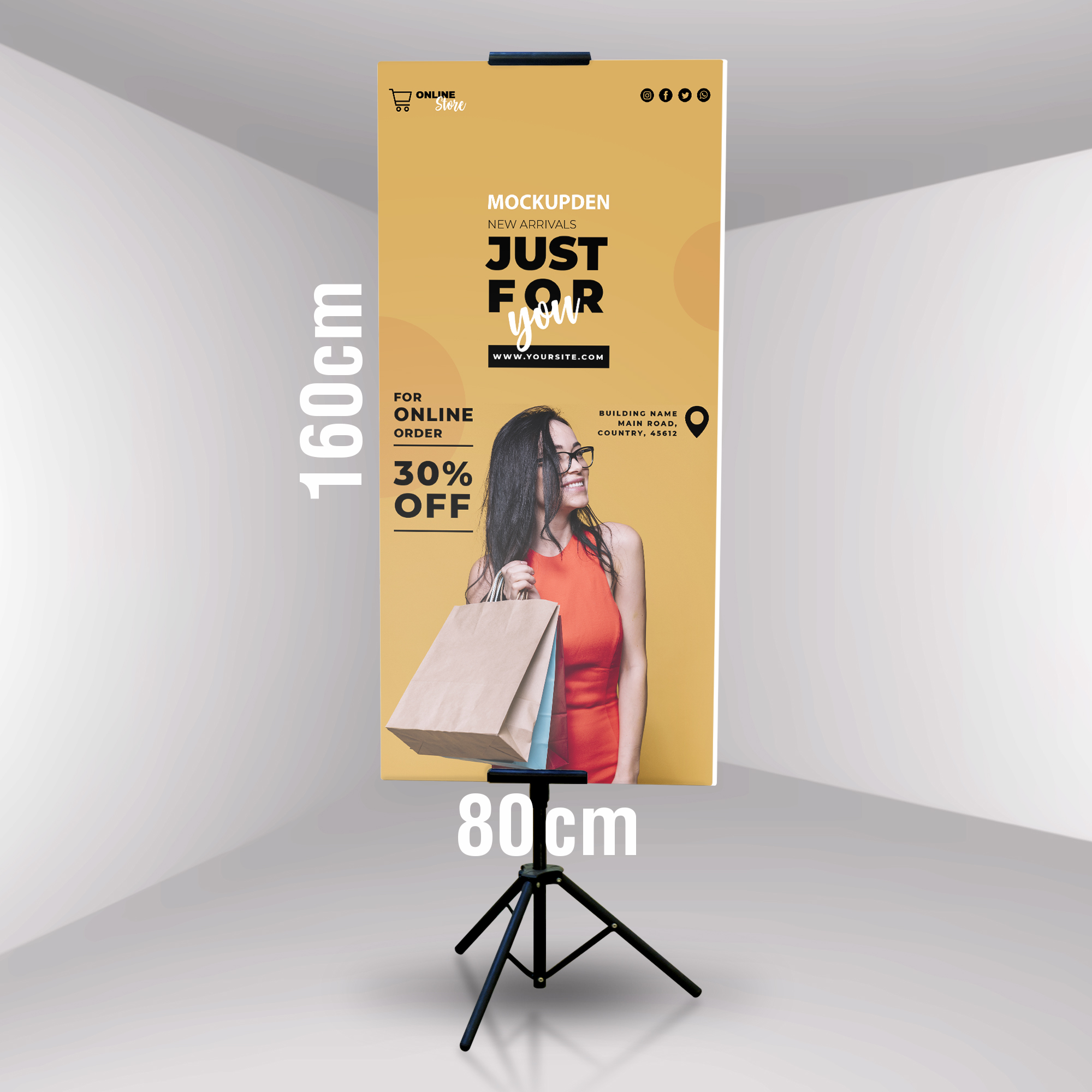 El porta pendón atril trípode pro se caracteriza por ser liviano, de fácil armado y por ser un soporte muy versátil en la presentación de formatos y sustratos.